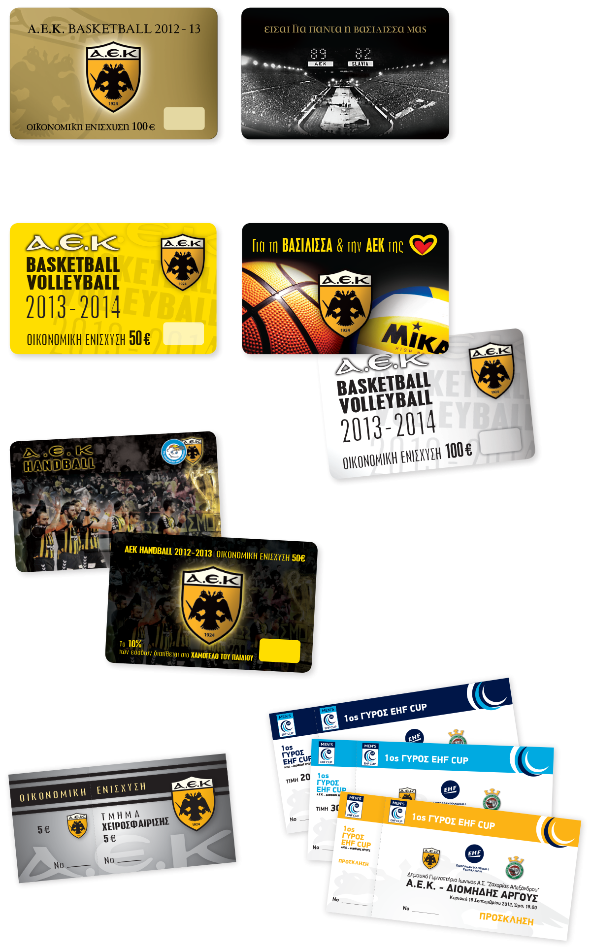 Σχεδιασμός εισιτηρίων αγώνων και διαρκείας για τα τμήματα μπάσκετ, βόλλεϋ και χάντμπωλ της Α.Ε.Κ.
